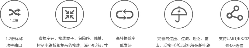 · 完善的电池(备电)充放电管理,均充浮充两段式充电方式,备电过放电切断保护